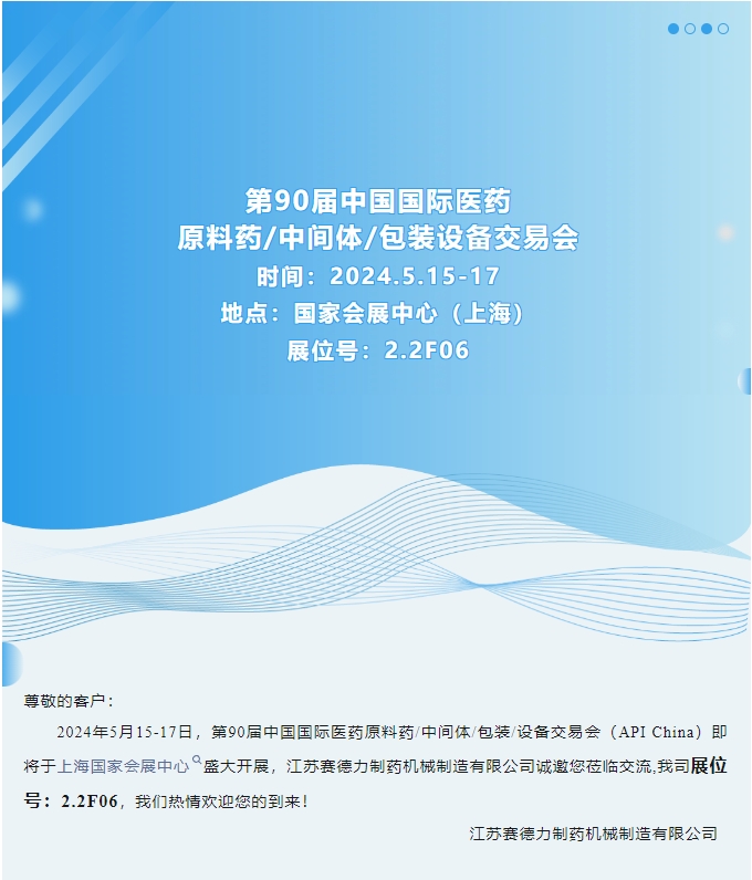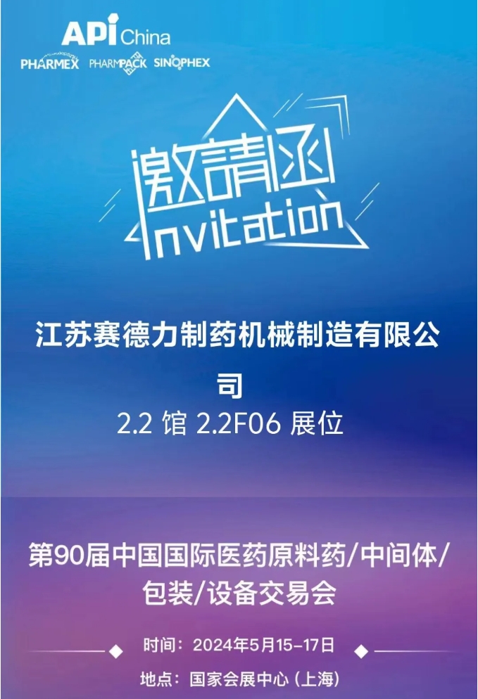 赛德力诚邀您参加第90届中国国际医药原料药/中间体/包装设备 交易会