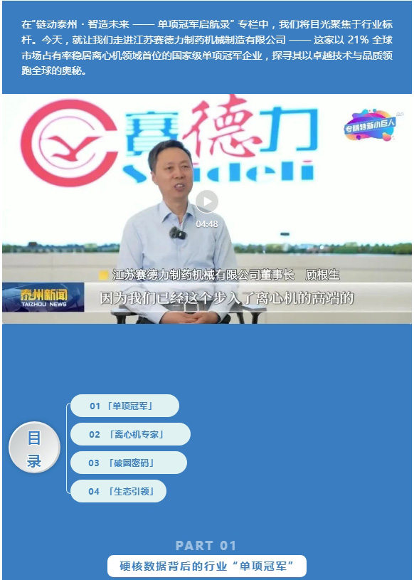 《链动泰州·智造未来——单项冠军启航录》共同探寻江苏赛德力的非凡之路